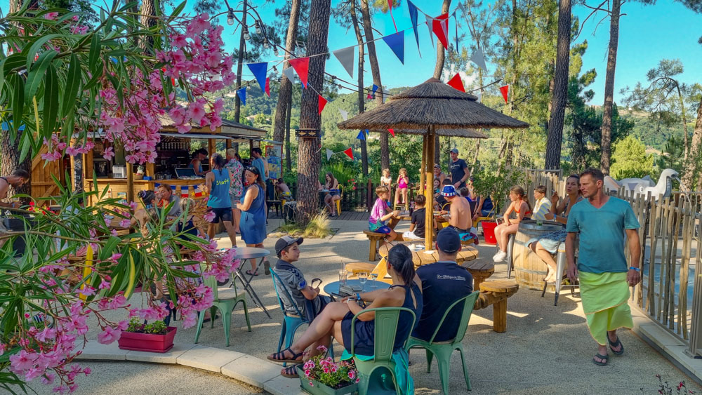 The bar, open from 8 a.m., is the ideal place to refresh yourself throughout the day. If the mood strikes you, enjoy a delicious cocktail, with or without alcohol, while relaxing under the pine trees. In the evening, the bar becomes a festive place where you can savor our Signature cocktails while enjoying the friendly entertainment.