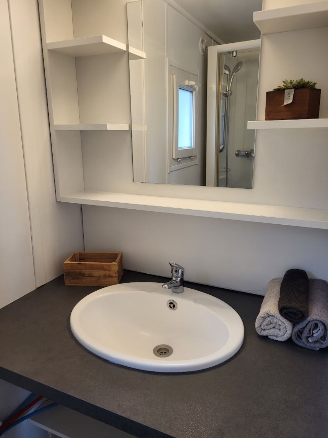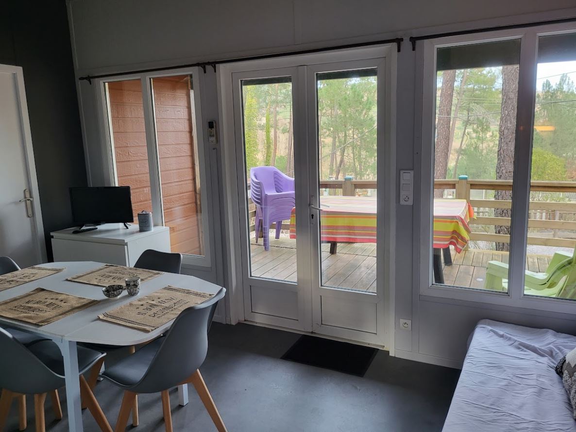Chalet SEQUOIA 34m2 avec terrasse couverte. Parking à côté du chalet.